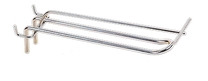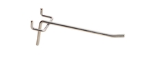 В зависимости от места установки они подразделяются на крючки для перфорированных панелей, для экономпанелей, на балку. Крючки бывают как с ценникодержателями, так и без них.